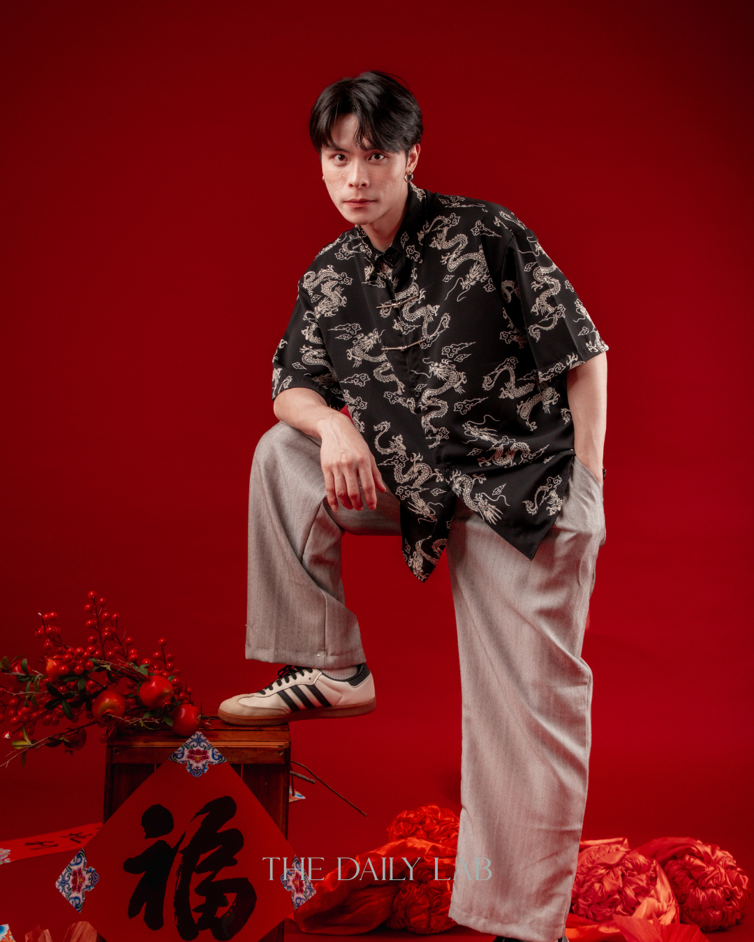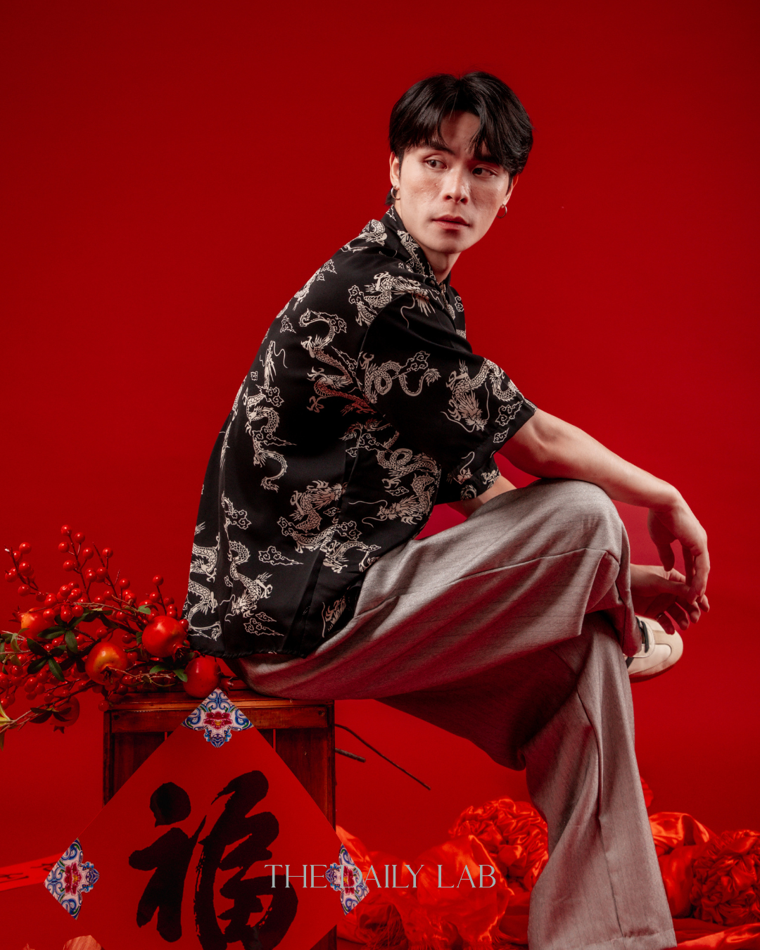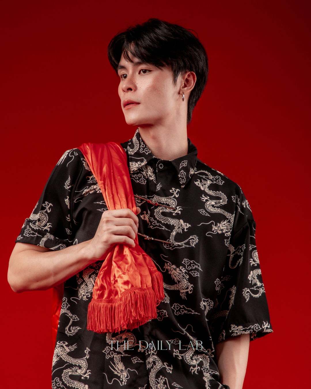 Black Gold Dragon Chinese Shirt in Black