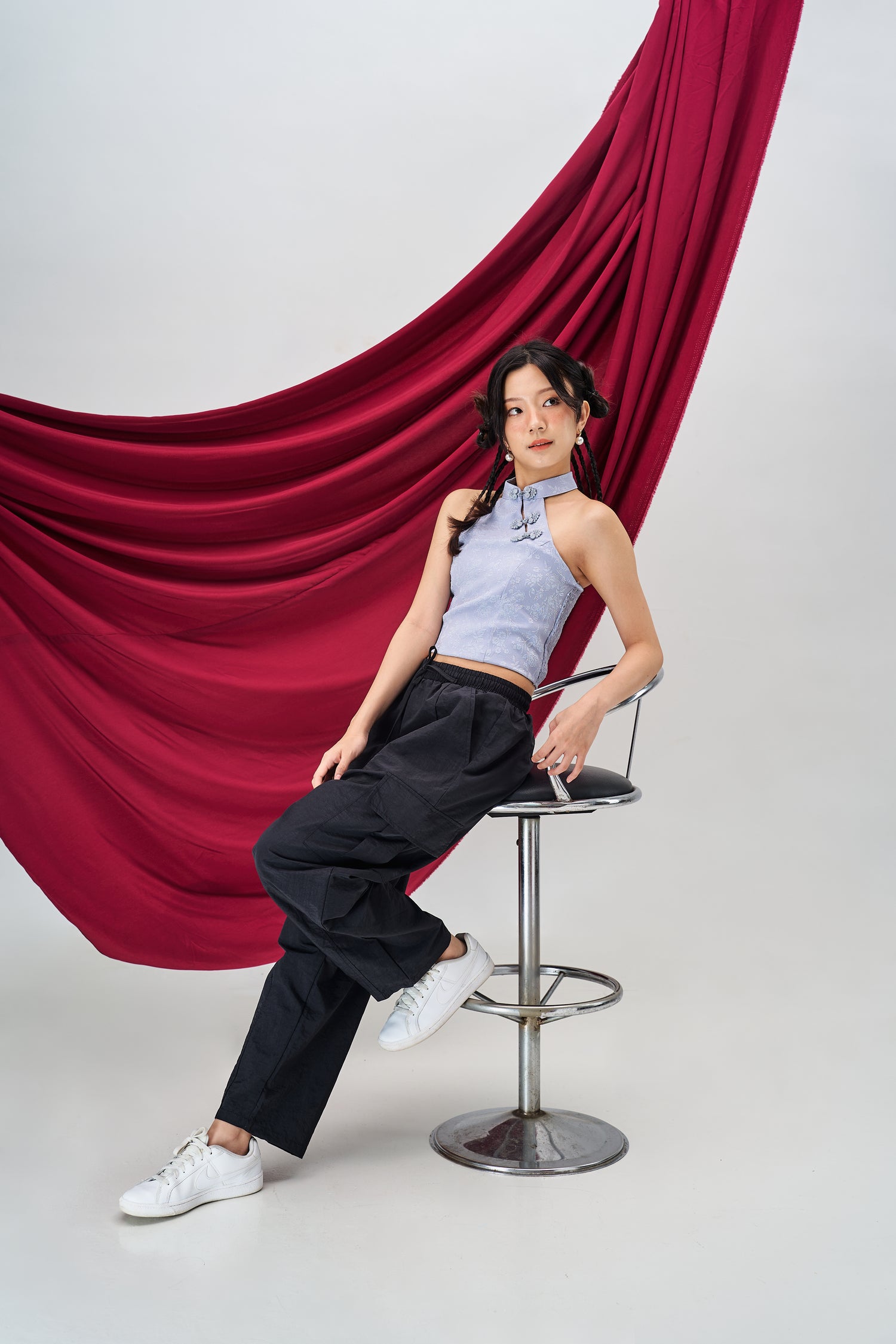 Halter Low Back Cheongsam Vest in Baby Blue
