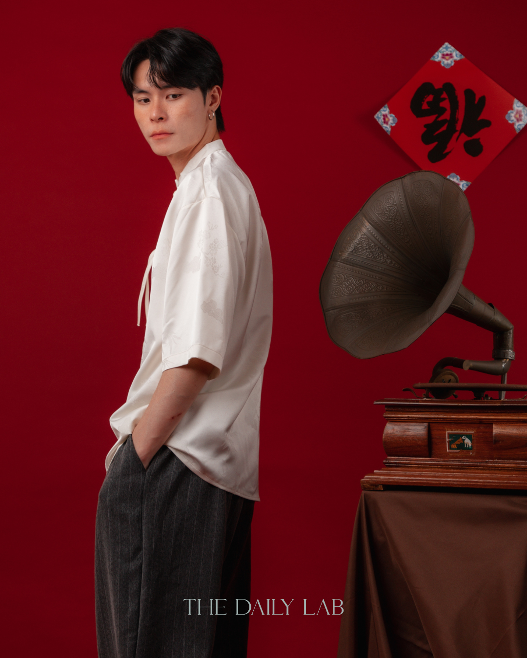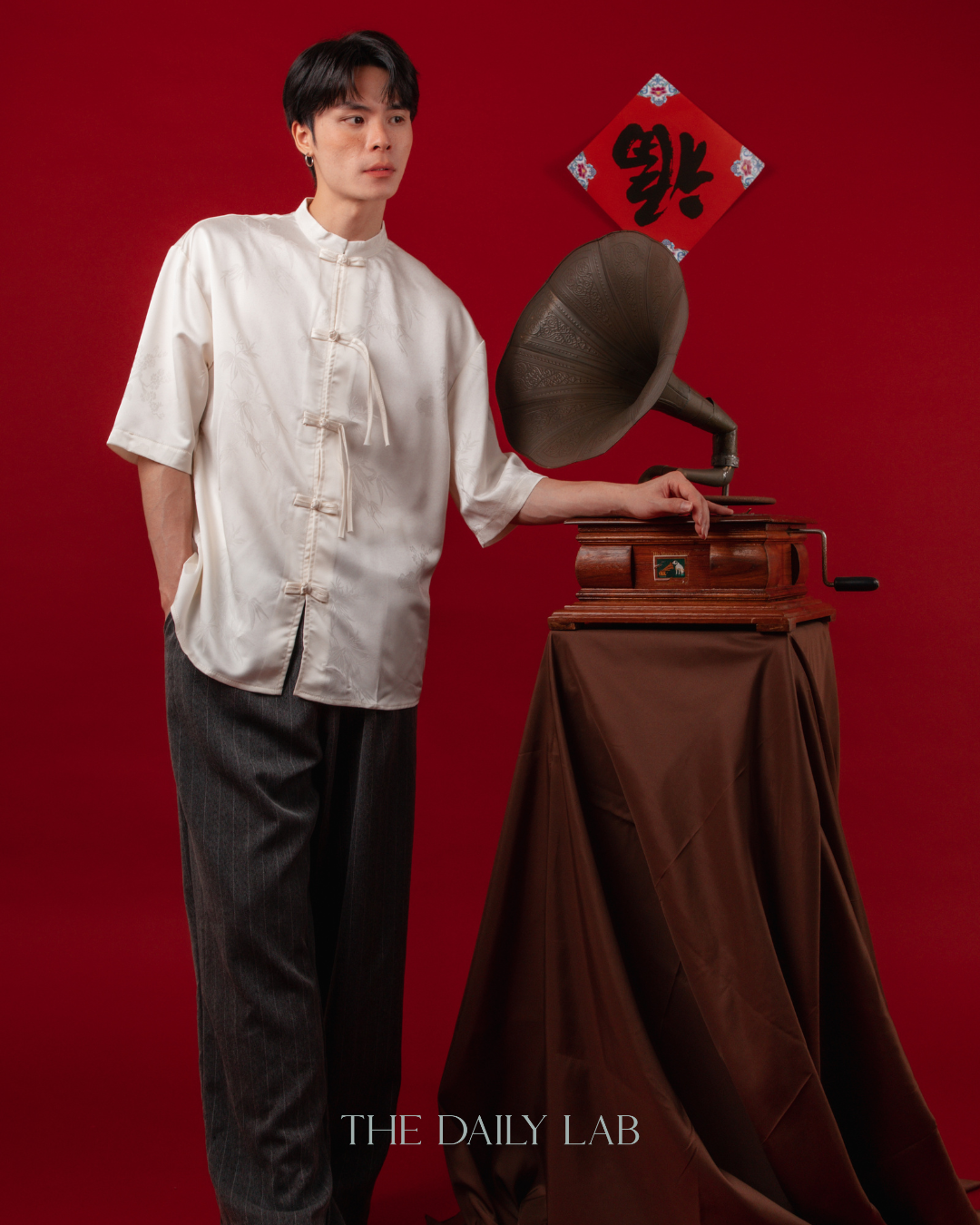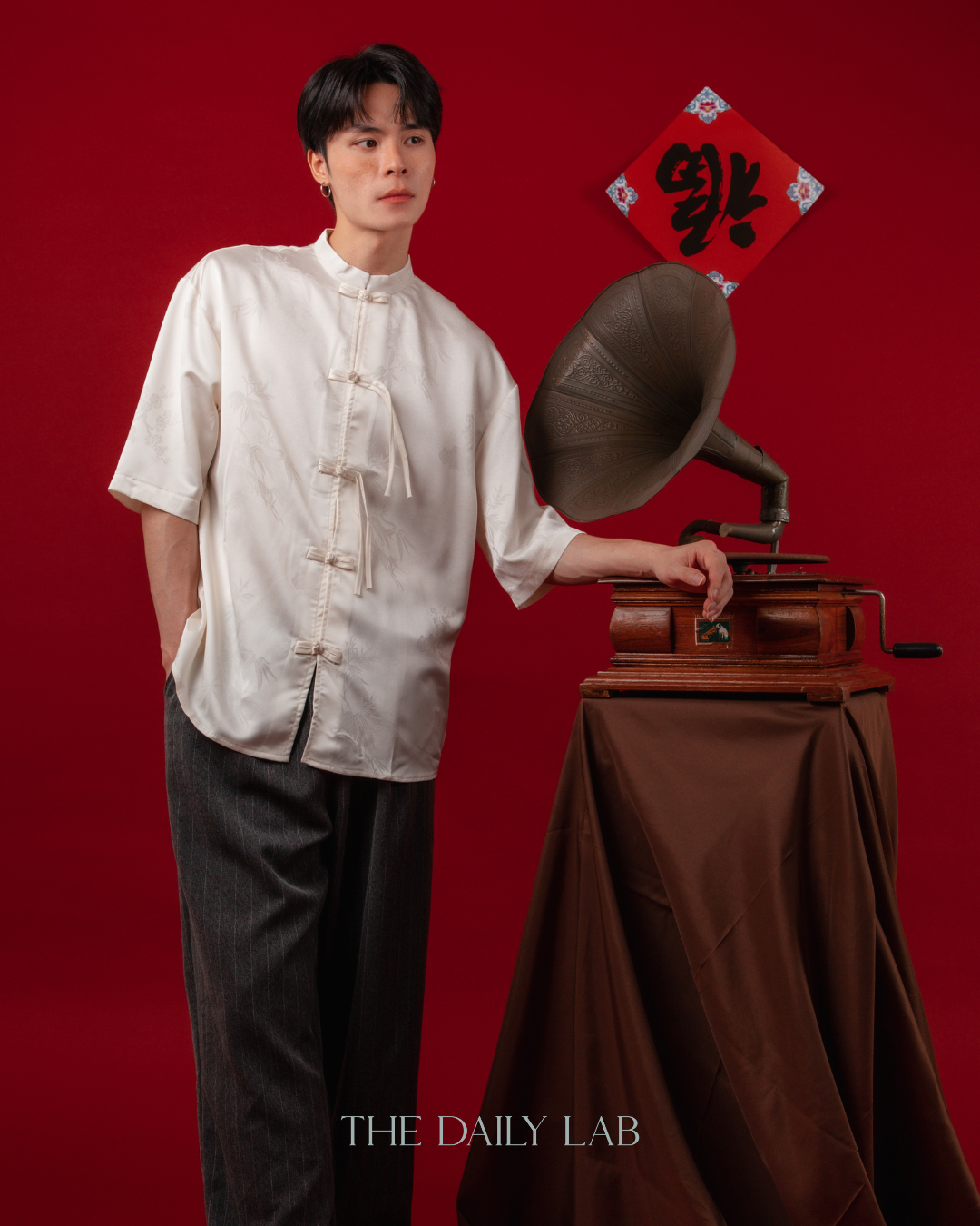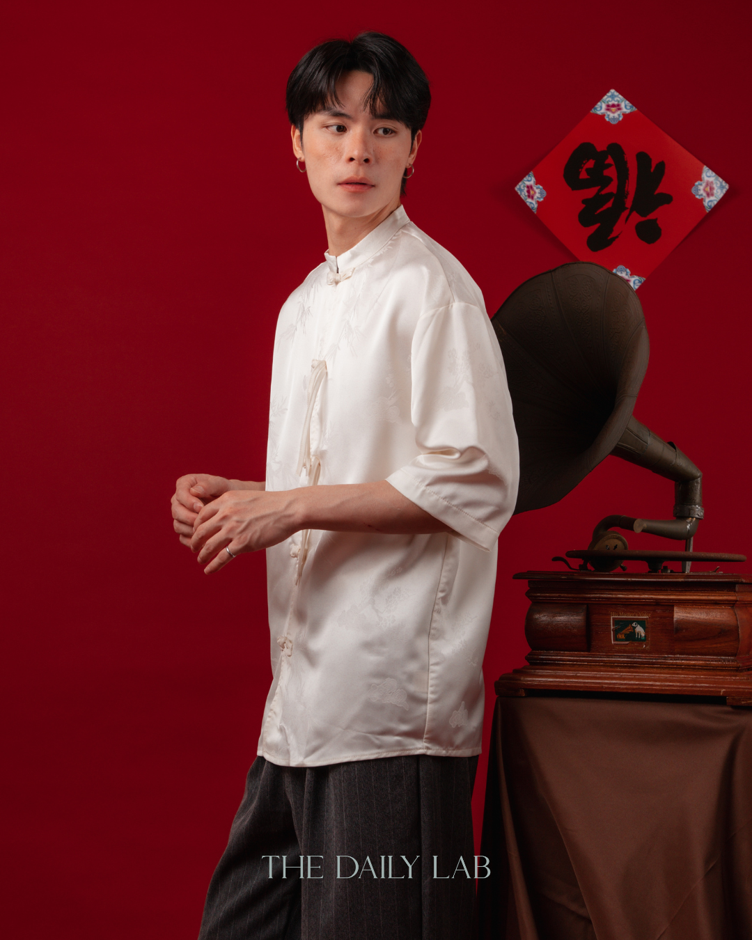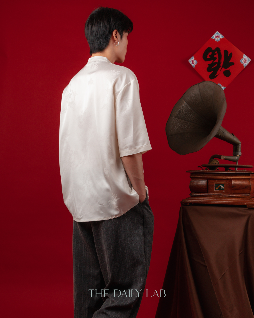 - Classic Tang-style knot buttons with a refined Mandarin collar